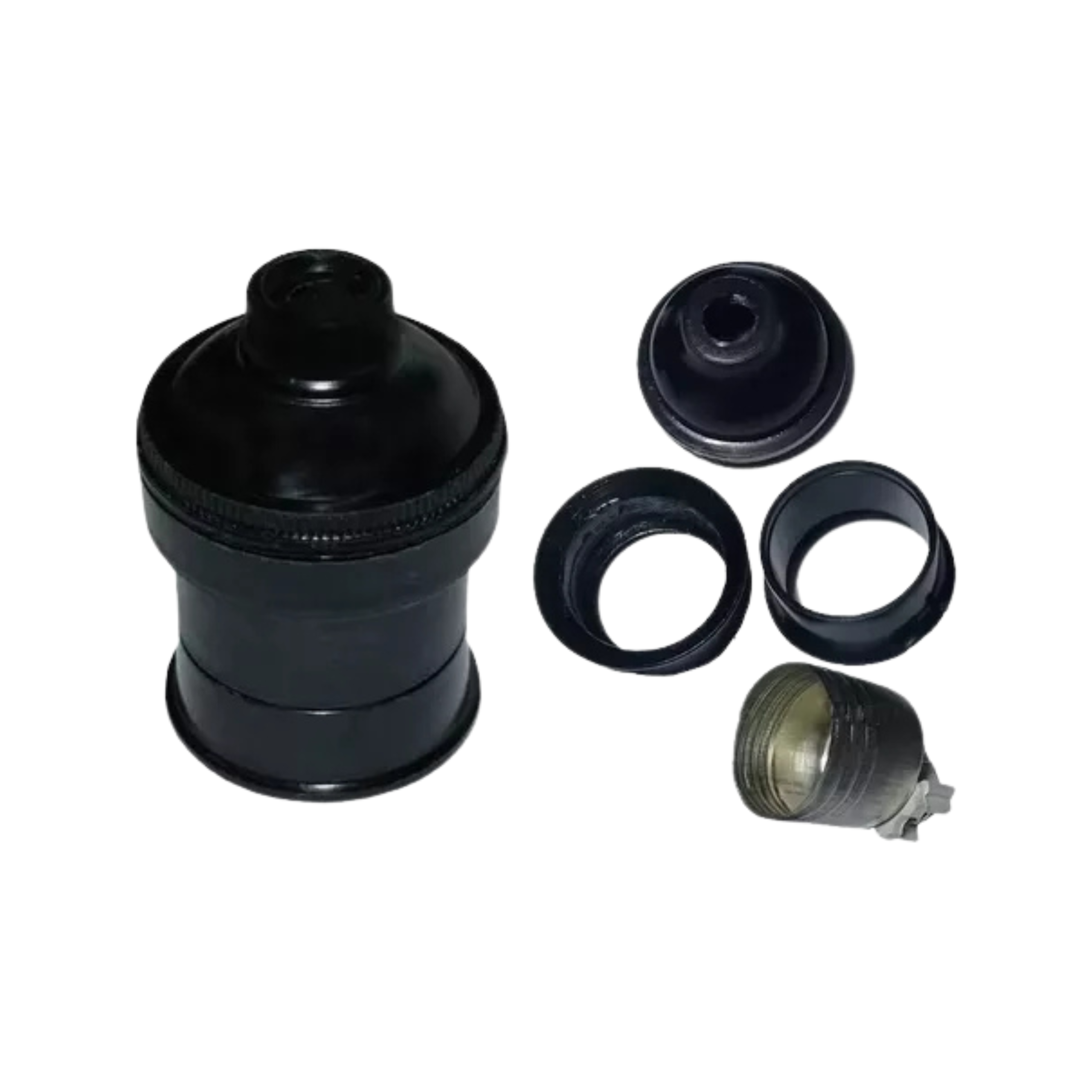 Estos productos ofrecidos en la tienda son de 3 piezas en bakelita o PVC y preparados para lamparas con roscas E27 (domesticas comunes). Pueden encontrar en otros apartados de esta web portalamparas para lamparas E14 (veladores) y E40 (exteriores o alta potencia).
